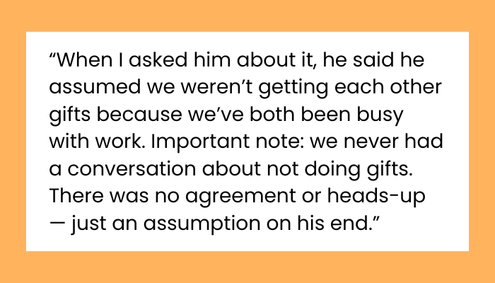People and SocietyAITA for Not Giving My Partner’s Mum a Christmas Gift After She Called My Gifts Tacky?Posted on December 15, 2025