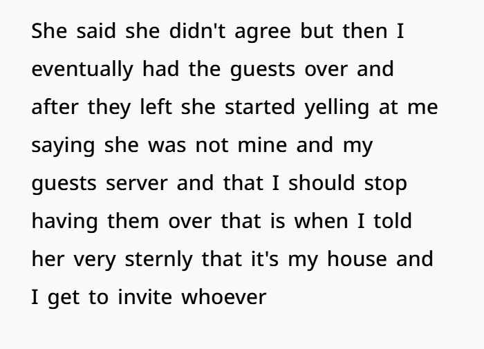 Let’s start here. Saying “it’s my house and I can invite who I want” is a HUGE red flag. It’s dismissive, outdated, and honestly insulting in a partnership. Even if he meant “it’s my house too,” it still reads like “I’m in charge.”