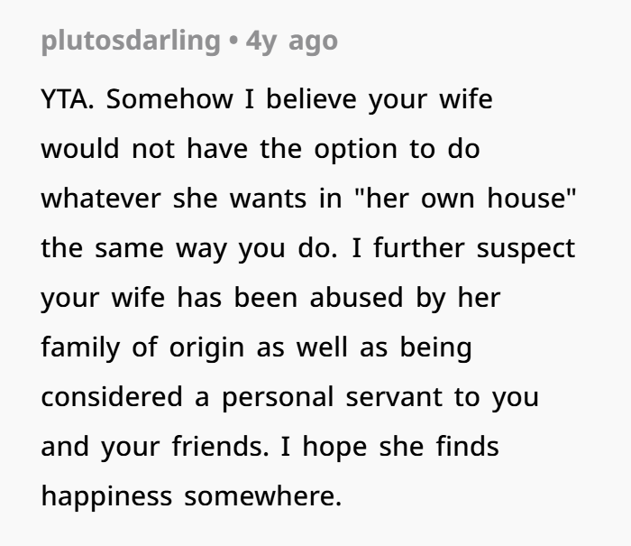 It all came to a head during Thanksgiving when he invited six guests without asking her first. She exploded — saying she’s not a maid, not a server, and not okay with continuing like this. His reaction? He “sternly” told her that it’s his house too, and he’ll invite whoever he wants whenever he wants. Now she’s giving him the silent treatment, and he’s wondering if he’s in the wrong. Reddit quickly labeled him the AH — but is there more to unpack here?