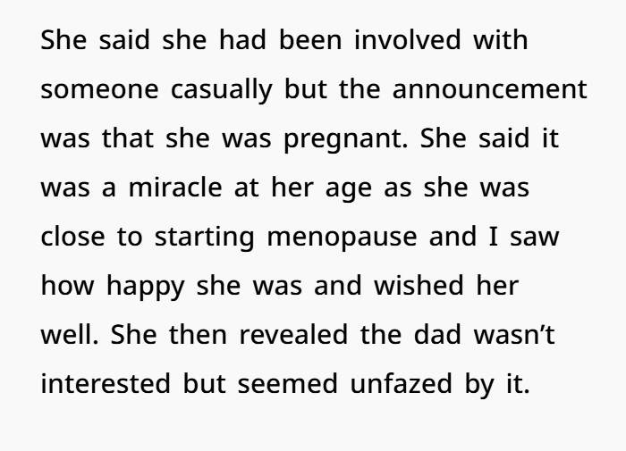 Alright, let’s just say what a lot of people are probably thinking already: being pregnant at 48 is rare, stressful, and expensive — even more so when there’s no support system or solid plan in place. But this isn’t about age shaming or judging someone for their miracle baby. It’s about accountability, boundaries, and reality checks — and honestly, OP is showing way more maturity here than his much older sibling.