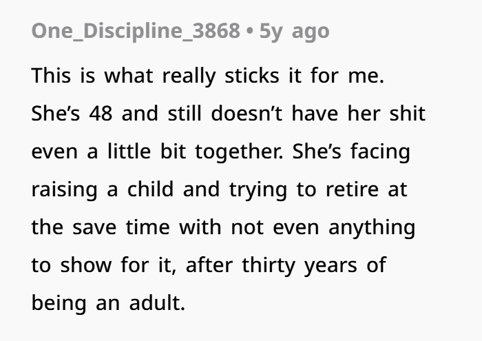 OP is 25. He’s barely starting out in life. He likely has career plans, dreams, maybe hopes for his own family someday — on his terms. Not through an accidental inheritance of someone else’s mess.