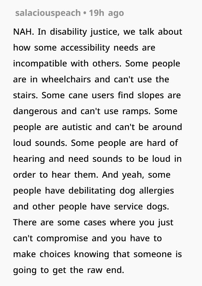 This isn’t about being anti-disabled. It’s about two people with conflicting disabilities and no perfect way to accommodate both. And in those rare cases, someone has to make a call.