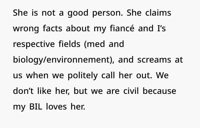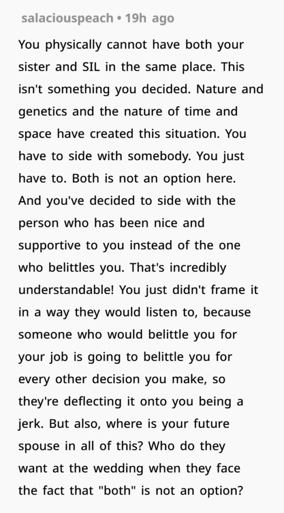 What makes this tricky isn’t just the logistics — it’s the personal baggage. OP clearly doesn’t like her SIL and admits she has a bias. The SIL has been rude in the past, argumentative, and not exactly a joy to be around. So even though OP handled the situation calmly and offered compromises, her tone might’ve come across as cold or judgmental — especially over text.