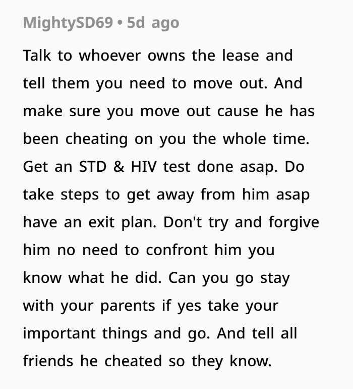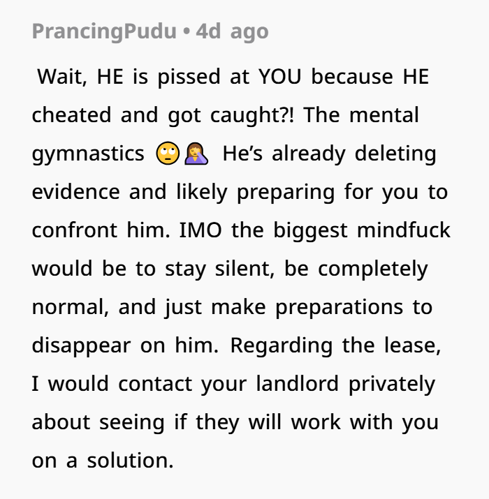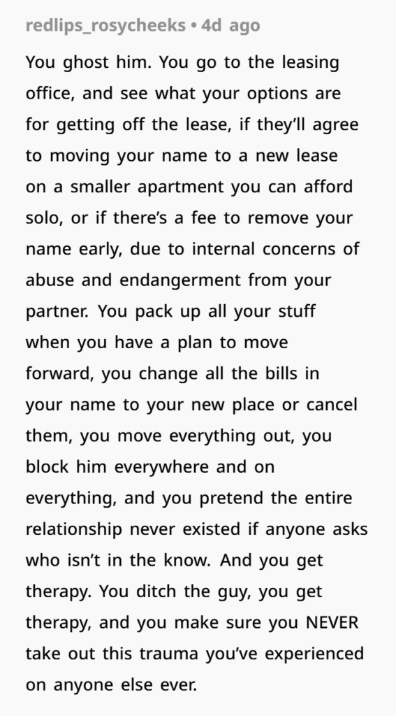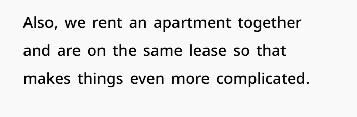 Third: you guys share a lease and a life. That complicates things. It means you’re financially and logistically tied to each other—which raises the stakes for how you proceed.