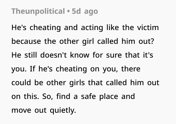 If he shuts down, blames you, avoids talking, or essentially punishes you for uncovering things—then you have to ask: “Do I want to stay where I’m not respected or safe?”