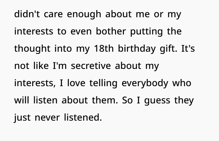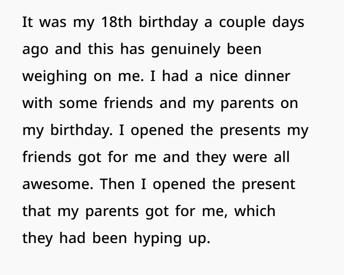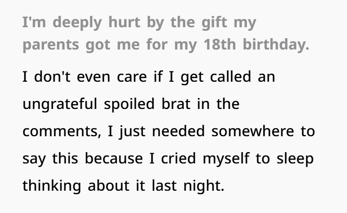 A teenager opened up about how she felt hurt by her parents’ thoughtless birthday gift
