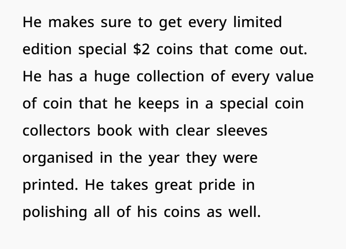 Watch how your parents treat you over time: Do they listen? Do they ask your interests? Do they follow through? If this coin gift is one in a long series of being “last considered,” it’s a pattern worth naming to yourself.