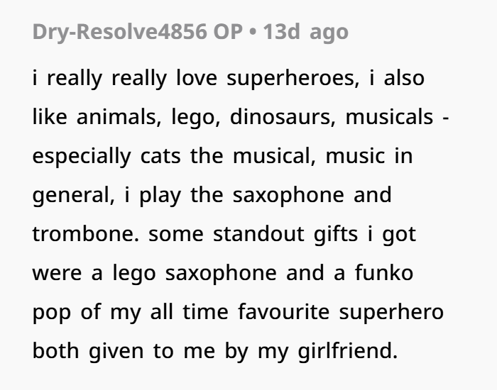 She explained more about her interests and what kind of gifts she would truly appreciate