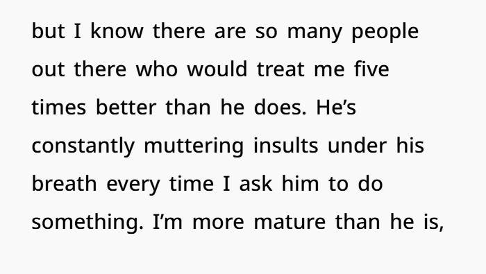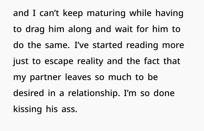 This is huge. You said it: “I’m more mature than he is.” That’s a major shift. When one partner is growing emotionally and the other stays stagnant, it causes friction, resentment, and imbalance.