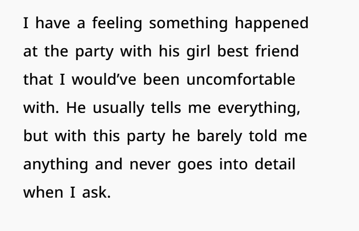 You said you feel something might’ve happened with his girl best friend. Whether it did or didn’t, the fact that you feel that way is telling. When trust is shaky, every tiny thing becomes a big deal. And understandably so.