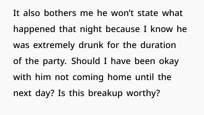 So, was this breakup‑worthy? Yes — but not just because of one party. It’s the pattern of neglect, lack of respect, and emotional immaturity that makes this more than just a tough night.