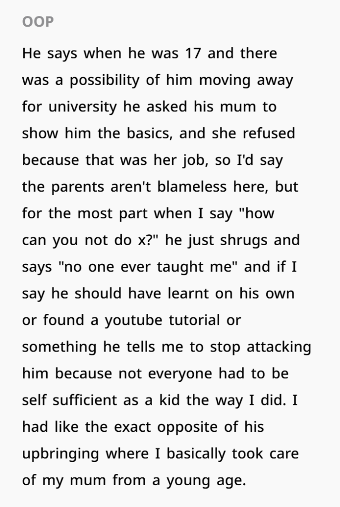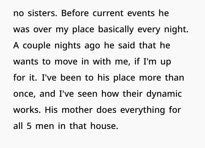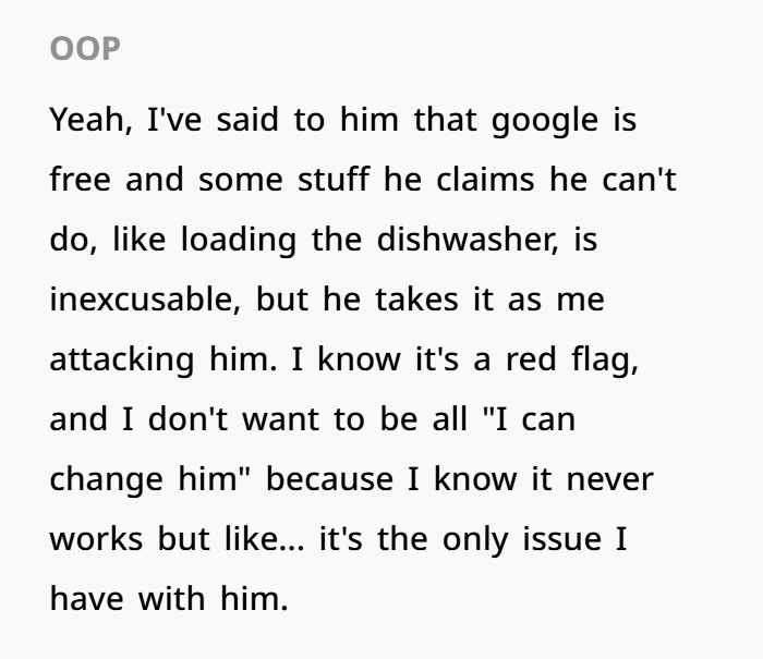 Let’s call this what it is: a classic clash between romantic fantasy and domestic reality. OP isn’t wrong to be cautious. In fact, her instincts are spot on—and what’s more, this scenario speaks to much larger issues in modern relationships: emotional labor, gender roles, and the burden of “teaching” grown adults how to adult.