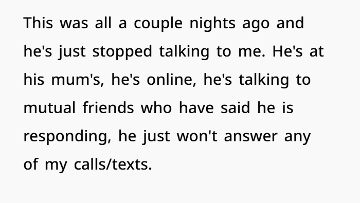 What’s especially upsetting is how quickly the situation turned on OP. She made a fair request, and instead of engaging in dialogue, he shut down, refused contact, and triangulated friends into taking his side.