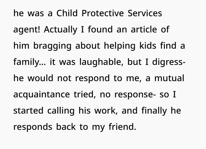 OP tried everything — contacting him directly, mutual friends, and even calling his work. She did what many would be too scared or angry to do — she stayed civil, persistent, and focused on her kid’s best interest. Props to her.