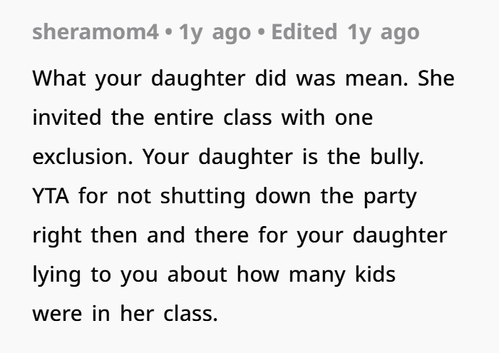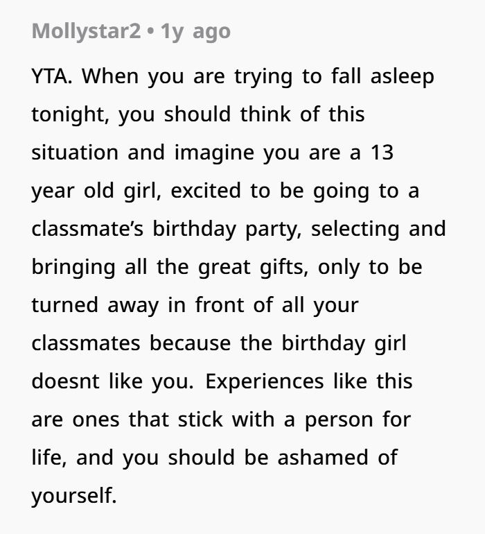 The internet stood behind the excluded child, agreeing that the birthday girl needed a lesson in inclusivity