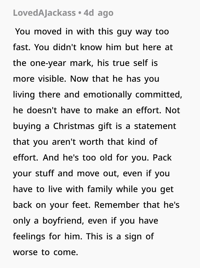 Woman Upset After Boyfriend Gets Her Nothing for Christmas, People Quickly Notice Their Huge Age Gap