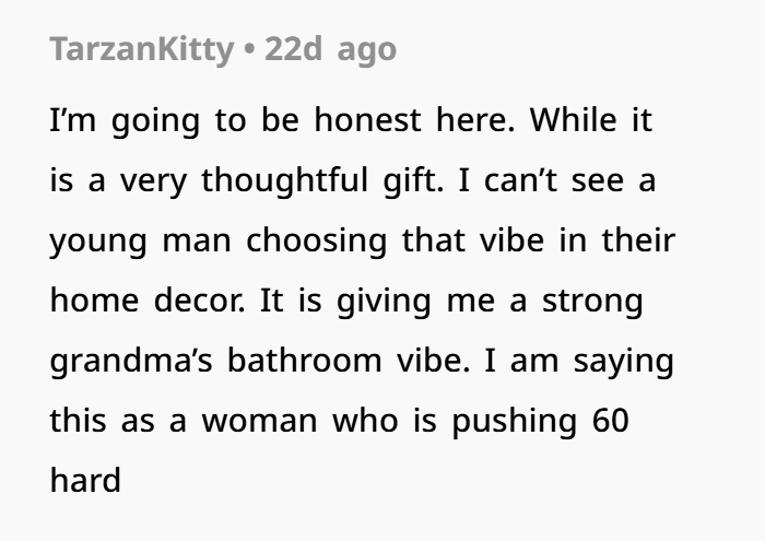 - Personal style / space constraints: Maybe he doesn’t have the wall space, or feels the gift doesn’t fit his decor, or wants to wait until he sorts his room.