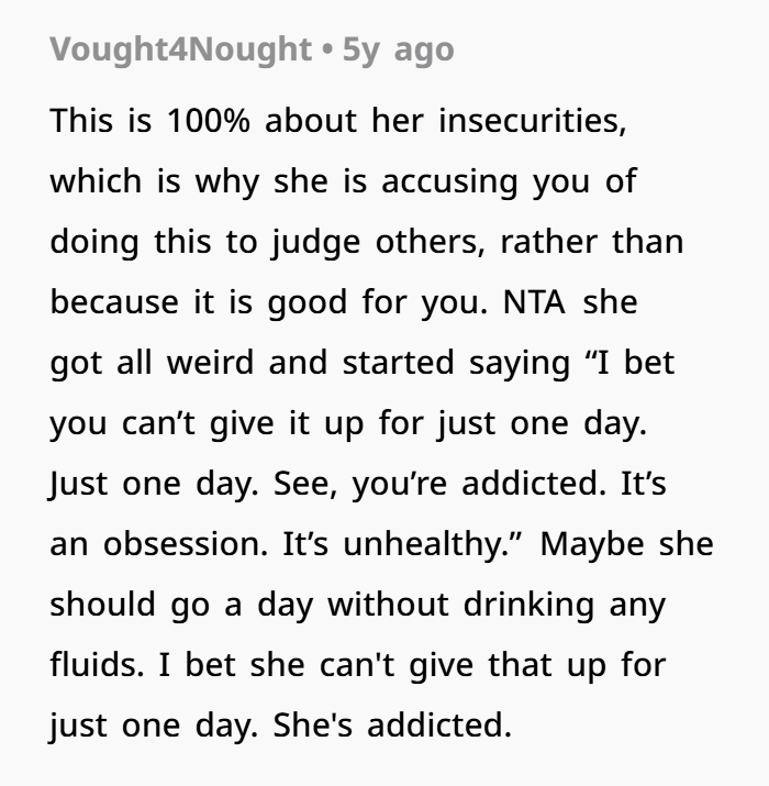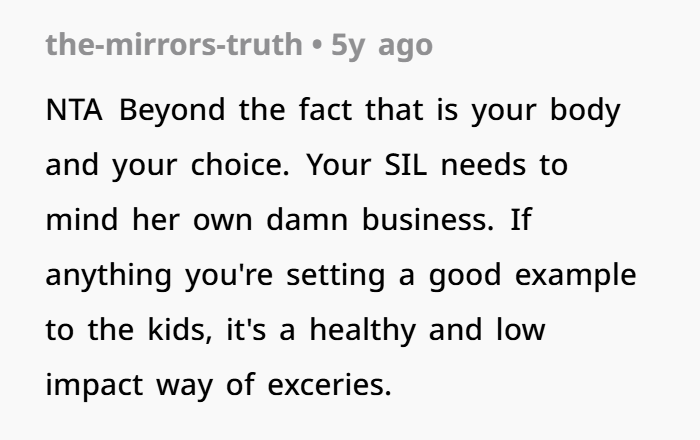 Netizens largely agreed with that decision, saying the sister-in-law just seemed jealous because she couldn’t stick to something like that herself