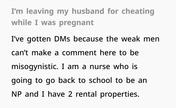 That’s the magic of online communities when they’re good. They remind us we’re not alone. That our pain is valid. And that strength sometimes looks like packing a diaper bag and walking away from a marriage with your head high and baby on your hip.