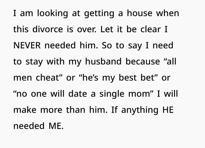 So when people say “no one will want a single mom” or “you need him to survive”? They clearly don’t know who they’re talking to.