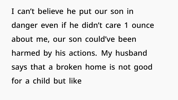 So no, she’s not being “too emotional” or “throwing away a marriage.” She’s protecting herself and her son from a toxic environment.