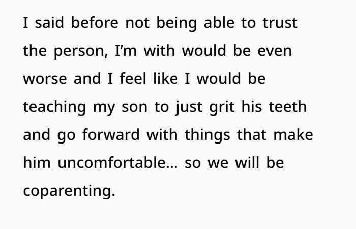 But she’s not letting that happen. She’s choosing healthy co-parenting. A setup where her son sees respect, healing, and emotional safety. That’s way more valuable than two parents faking it.