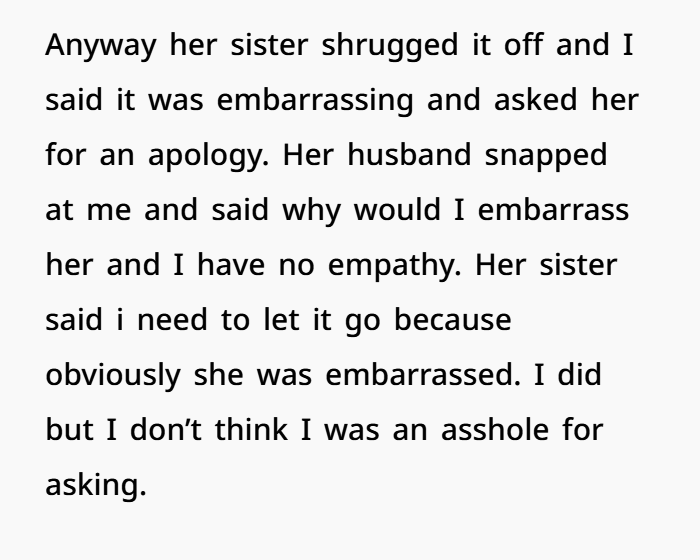 Asking for an apology after being lied about for years isn’t unreasonable—it’s basic self-respect. Her embarrassment doesn’t erase the impact of what she did.
