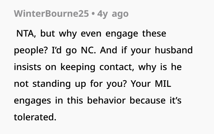 Instead of supporting that request, the MIL’s husband and sister flip the narrative.