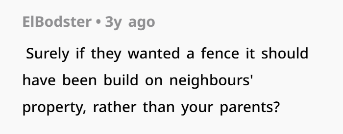 By letting the neighbors build the fence but making them cover all the costs, the family drew a clear line. No extra labor. No extra expenses. No guilt. That’s how you stop entitlement before it turns into a pattern. The neighbors probably learned not to overstep. And the family learned that standing firm doesn’t have to mean being rude.
