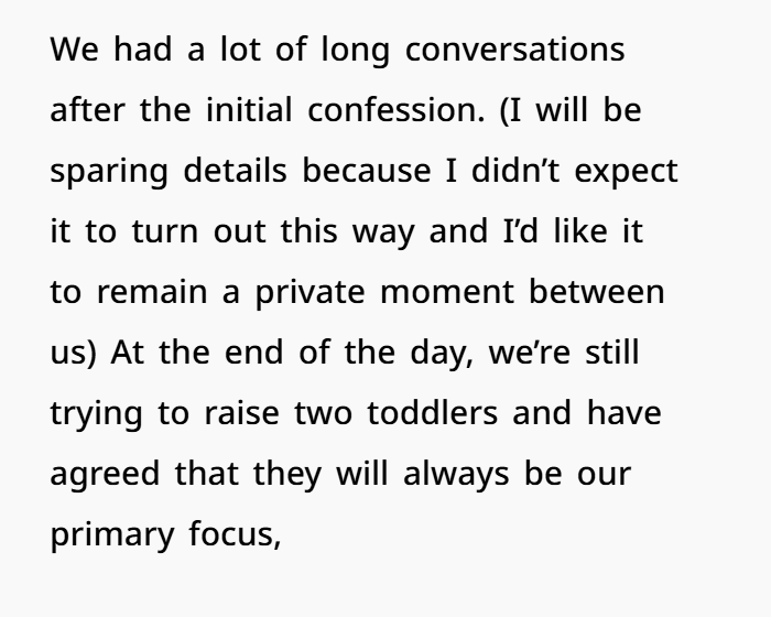 Even though I didn’t expect much more than a functional partnership, there was always a sense of comfort and familiarity with him. We knew each other so well, and I believed that would be enough for us to raise our kids in a stable environment. However, I never expected that things would shift as they did.