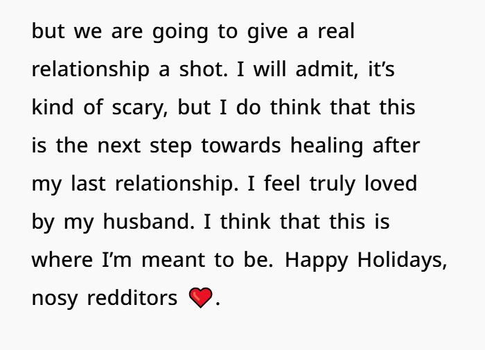 I’m still a bit scared, and I don’t know exactly what the future holds for us. We’re both learning how to build a real romantic relationship while raising two toddlers, and I know it won’t be easy. But for the first time in my life, I feel truly loved. Not because of the grand gestures, but because of the quiet, steady care he’s shown me. I think this is where I’m meant to be.