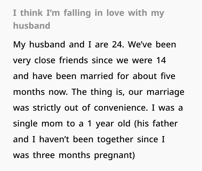 My relationship with my husband has always been unique. We’ve been friends since we were 14, and we’ve supported each other through thick and thin. Fast forward to our marriage, which wasn’t driven by a love story but more by practical reasons. I had a one-year-old son, and he had just taken guardianship of his cousin, who was only a few months younger. So, we made the decision to marry—not for passion, but because it seemed like the best way to raise the kids together in a two-parent household.