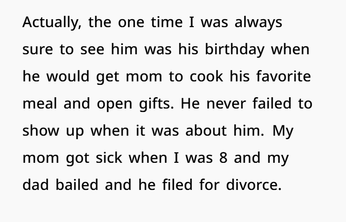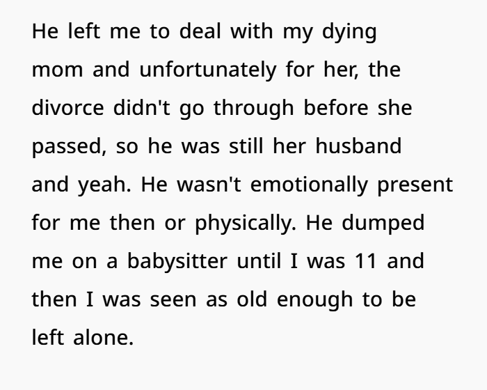 A 17-year-old shared how her father, who frequently left her with babysitters when she was younger, now expects her to care for his stepchildren