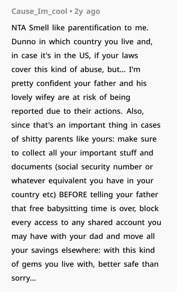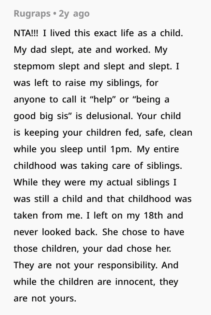 “older children shouldn’t be forced to babysit their younger …” Reddit
