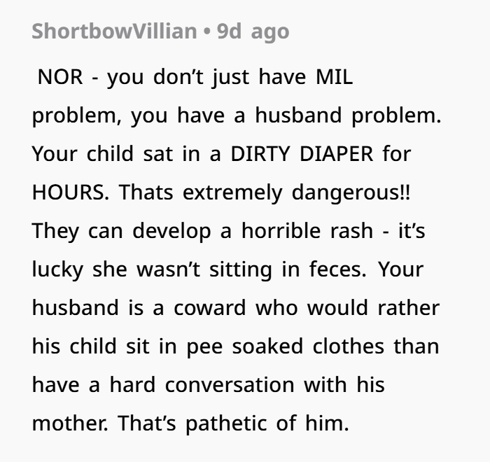 A mom discovered her MIL had left her 3-year-old in a soaked diaper for over eight hours