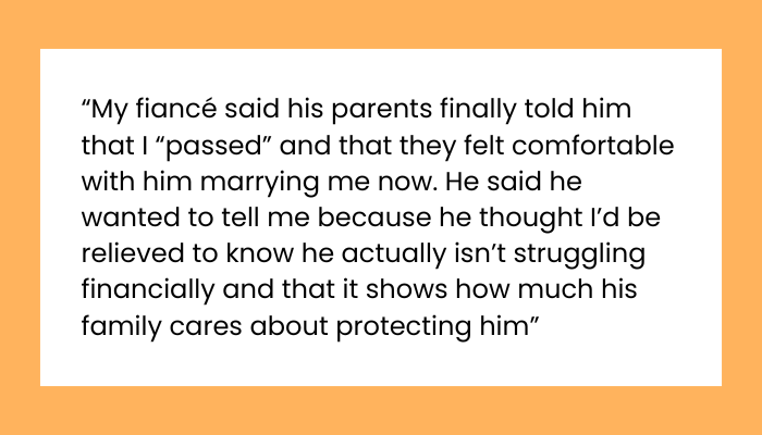 So she reacted the way any loyal partner would. She tightened her monthly budget. Focused on saving money. Cut back on personal spending. Probably skipped small things she enjoyed just to be responsible. She kept reassuring him, saying she didn’t care about wealth management or investment portfolios or any of that — she cared about him. His character. Their future. Meanwhile, every move she made was being watched. Evaluated. Judged like some kind of credit score for love. When his parents finally announced she had “passed” their little test, he surprised her with an upgraded luxury honeymoon package. Five-star resort energy. Instead of feeling excited, she felt embarrassed. Manipulated. Almost emotionally scammed. And suddenly she wasn’t sure she could marry someone who thought it was okay to test her loyalty like a financial background check.