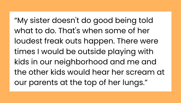 The author of the post has an elder sister, who is mentally disabled and is prone to violence outbursts