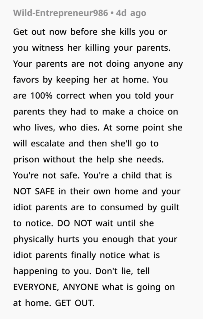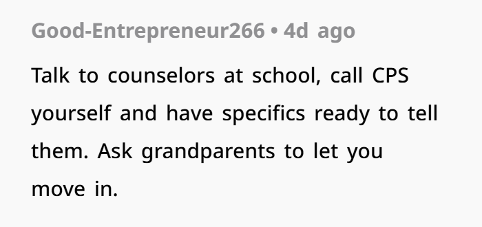 But avoiding help doesn’t fix anything. It just creates a home where the other kids—like OP—are stuck living in chaos. Sometimes the only “safe” route seems to be silence. Or escape.