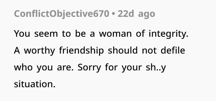 When someone confides in you — especially a best friend — there’s an implicit covenant of trust. You promised (implicitly or explicitly) to hold their vulnerabilities, mistakes, secrets. Breaking that is a kind of betrayal.