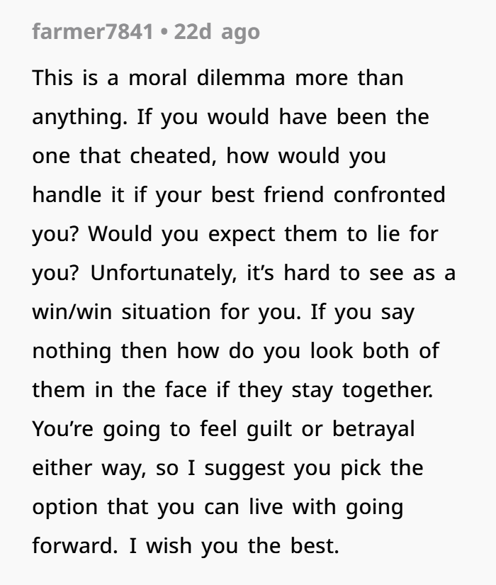 Witnessing your best friend cheating on their partner creates a nightmare dilemma for you